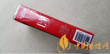 煙盒的左側(cè)很簡(jiǎn)潔,注意在中上部紅色L&M Logo下,用銀色印制有RED LABEL LONG的字樣,顯示這是一款100s長支卷煙。下部黑框內(nèi)標(biāo)識(shí)有理化指標(biāo),10mg焦油含量。
