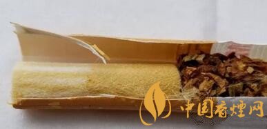 濾嘴是普通的土黃色雪花點(diǎn)水松紙,能看到水松紙上一圈粗粗的降焦孔,從位置看,應(yīng)該是開在了濾嘴的中段偏下位置。不出預(yù)料的話,濾嘴也應(yīng)該是一段式的醋酸纖維絲束,待會(huì)剖開看看就知道了。