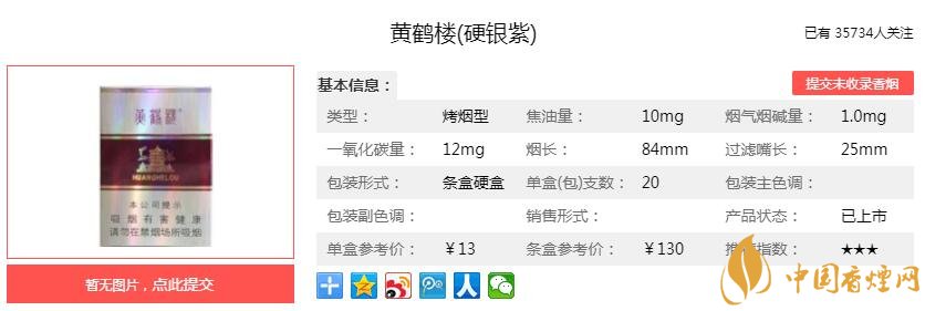 采用小比例配打煙葉技術,以一類煙工藝規格嚴格工控,保證質量更穩定,抽吸更順暢。25MM短咀棒設計,著力強調抽吸時香氣的優雅感及高滿足感。通過人體最適宜的煙氣配比,提煉出更純凈的煙草本香,舒適度更勝一籌。經香煙網小編市場調查黃鶴樓硬銀紫售價為13元/包。