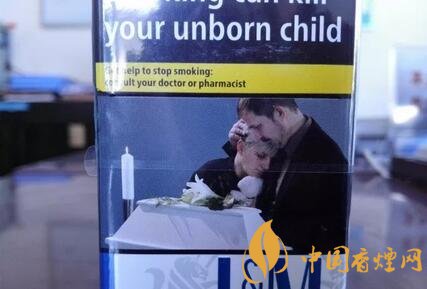 與歐盟警示圖片版本的萬寶路一樣,因為警示圖片內容印制于煙盒的正反兩面,英文警示語句,只能位移于煙盒的左右兩側。