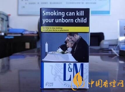 這是一款煙盒正反面均有警示圖片的版本,與單面警示圖片的法免藍駱駝還稍有區別。上文中的免稅GCC版本的精切紅L&M煙盒上的標識位于煙盒翻蓋處不同,法免藍是位于煙盒下方。FINE CUT字樣依然印制于煙盒的左下角。