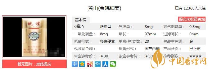 三、黃山金皖細支香煙參數
