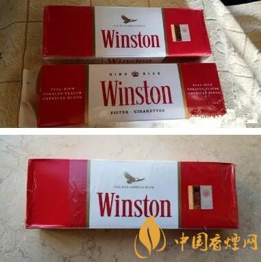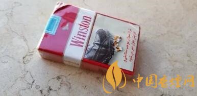 軟包包裝。還是云斯頓經典的紅—白—紅三段式版面布局,上端紅色區域正中有金色飛鷹的圖案。老版雷諾茲版本則是一個金色王冠的圖案。這個版本,煙盒下部3/5的面積被忠告圖占據。比較老式的云斯頓版面配上彩印的忠告圖,視覺上有種特別的感覺。