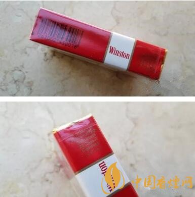 這款伊朗完稅軟紅云斯頓的稅標是貼在條盒上的。條盒是云斯頓經典的紅—白—紅三段橫排設計,Winston標識上有金色的飛鷹圖案,比那款摩洛哥版本的設計要新一些。