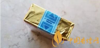 拉帶位置,很經典老式的那種,離煙盒頂部3mm左右。撕掉拉帶,露出煙盒煙封和金色的防潮錫紙。沒有了塑料紙的遮擋,防潮錫紙的金色很有質地感,金色的錫紙一如禮拜寺金色的圓形拱頂,熠熠生輝。和藍色系的煙封對比度強烈。