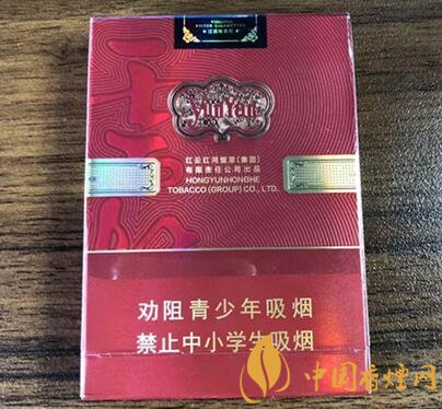 云煙中支延續(xù)了云煙細支珍品整體設(shè)計元素和風格。保留云煙細支珍品傳統(tǒng)朱砂紅基底色、祥云如意圖標、孫正琦先生手書“云煙”字樣等傳統(tǒng)設(shè)計元素,并采用新的卡紙基底涂布、暗紋壓印等新工藝,煙盒基底顏色較傳統(tǒng)云煙細支珍品的朱砂紅要偏深一些。正中間標識性的金腰帶,上面印有云紋的圖案,金色祥云上有兩處云煙拼音,下面還有珍品香煙字樣,黑色字體,設(shè)計感十分強。