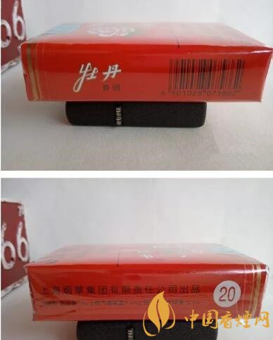 煙盒的左側有牡丹香煙字樣,還有這款煙的商品條碼。