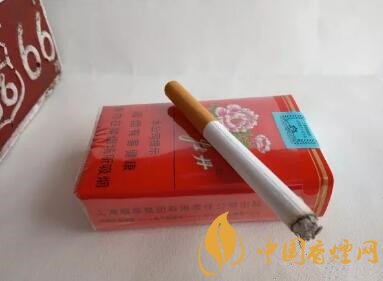 煙嘴顏色是黃色,上面隱約可以看到一些白色的小點,煙支上面印有牡丹的圖案和logo。