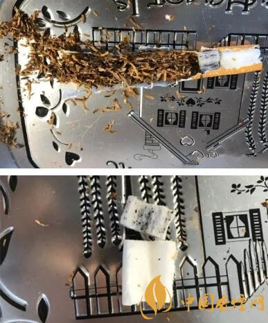 出于好奇,把其中的一根進行了分尸。可以看到有兩段過濾嘴,一段加了活性炭,一段就是普通的過濾嘴。