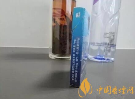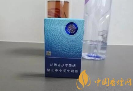 看包裝,煙盒的正面通體以藍色為主色調,整體的色彩仍然維持著“利群”系經典的三段式設計,顏色從上至下逐漸加深。上段為小翻蓋,在小翻蓋的右側是一個直徑約為18MM的圓形標志,圓形標志的主色調為寶藍色,里面是利群的漢字和漢語拼音,圓形的輪廓和字體的顏色為金色。