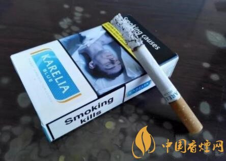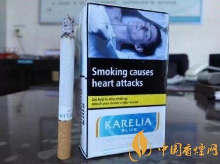 煙的名字,是KARELIA,我稱其為卡瑞利亞。當然,網上也有其它的譯法。這是一款產自歐洲希臘的免稅版本香煙,BLUE藍款。由此看來,至少還有RED紅款的存在。許多混合型品牌香煙,諸如L&M、云絲頓等,都有紅藍款的樣式。紅款為濃郁的原味,藍款為清雅的特醇味道。