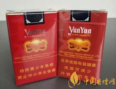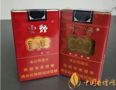 煙嘴上的文字皆一樣,從上往下是“雲煙”兩個字,成階梯形排列。在煙嘴表面的下部,各有一道圓箍,顏色與煙盒正面的logo的顏色相呼應。