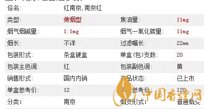 南京(紅)香煙相關(guān)價(jià)格 口感及參數(shù)介紹