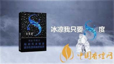 此款雙爆包裝和8度單爆基本是一樣的設計,只是在8字圓環處采用了藍綠2種配色,兩片綠葉襯托著一顆冰珠,并釋放微光,表述這款香煙是兩種口味的爆珠。