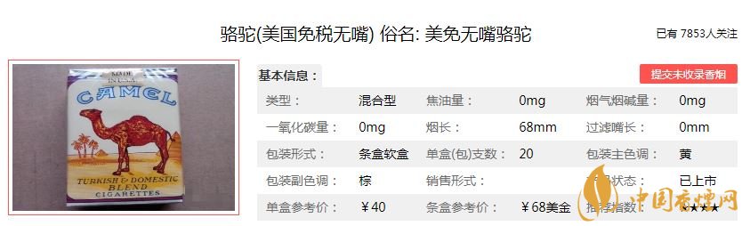 以上是香煙網小編為大家整理介紹的無嘴駱駝(美國免稅)香煙的價格參數,以及煙民評價,希望為大家提供幫助。如果你抽過這款無嘴駱駝,可以在下方評論區留言。