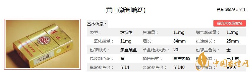 黃山新制皖煙價格參數: