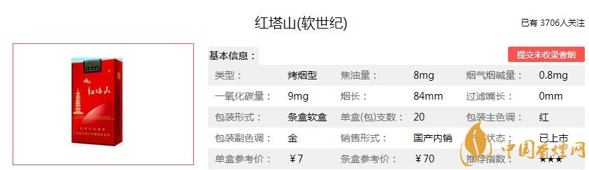 世紀紅塔山價格參數: