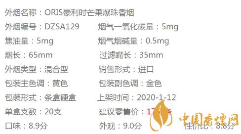 ORIS芒果味爆珠香煙參數