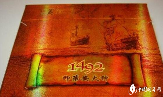 貴煙印第安火種的包裝以暗金色為主調,正面的非警句區域選用了煙葉作為底紋,葉面、主脈、支脈都清晰可辨,恰到好處的褐色副色調渲染出完全成熟、焦香四溢的感覺。背面是一幅圖畫,遼闊的大海、古老的帆船、神秘的卷軸。