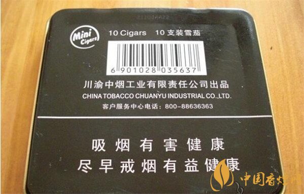 | 類型 :雪茄煙 | 焦油量 :10mg | 煙氣煙堿量 :2mg | 一氧化碳量 :12mg |