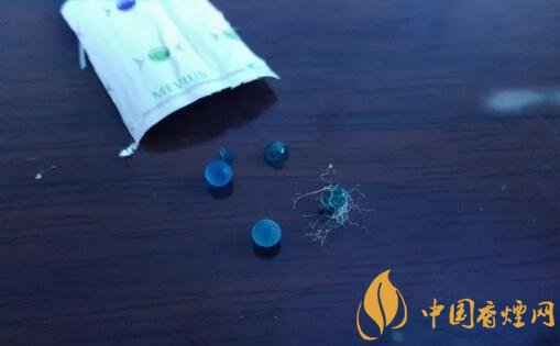 梅比烏斯香煙和七星爆珠相比,當然也有說這個和國內的七星藍莓爆沒法比,捏雙爆也沒有單爆帶勁,原以為過濾嘴紙上印制的綠色爆珠標識,海綿中的珠子也是綠色。但取出來之后,發現兩顆都是藍色的。