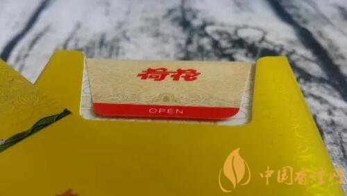 裝載煙支的內(nèi)盒上方,貼有印制著水紋圖案的標(biāo)簽。手指觸碰OPEN部位,向上掀起,便露出了過濾嘴。這樣的封簽,作用多是保濕保潤,防止煙支干燥變硬。嬌子寬窄香煙中,也有幾款采用這樣的封簽設(shè)計。