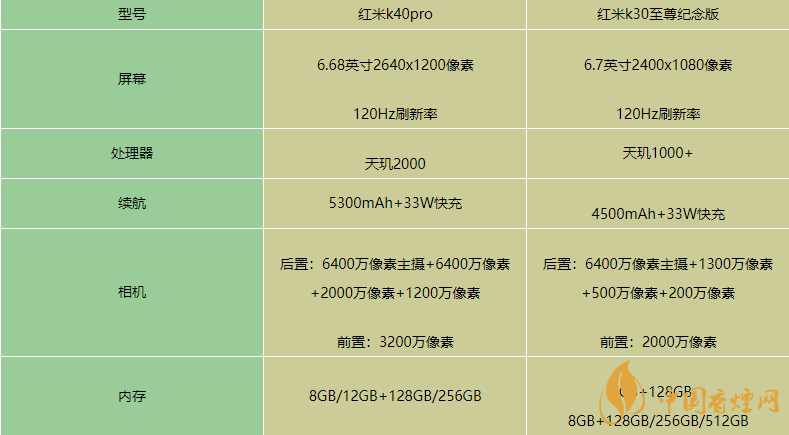 紅米k40pro和紅米k30至尊紀念版怎么樣-官方參數對比2020