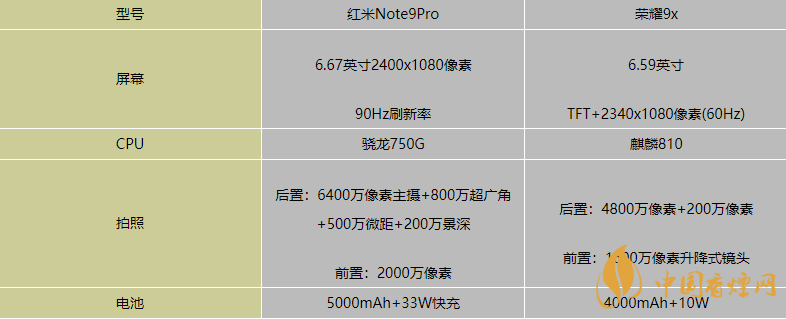 紅米note9pro和榮耀9x哪款性價比好-配置參數對比