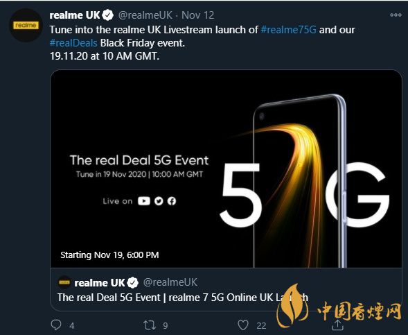 昨天,Realme75G通過了NBTC認證。隨后,realme在Twitter上正式確認了realme75G的發布日期:2020年11月19日。下面跟著小編來一起了解一下吧。