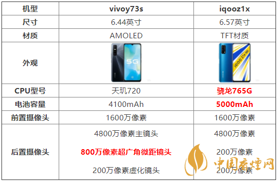 vivoy73s和iqooz1x參數對比