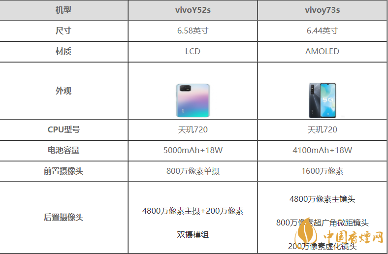 以上是小編整理的有關vivoY52s與Y73s哪個好的最新信息,相信在座的朋友們聽到小編的介紹有所認識,但是小編在這里提醒一句還是要根據自身情況考慮哦,更多最新最實用的資訊請持續關注香煙網。