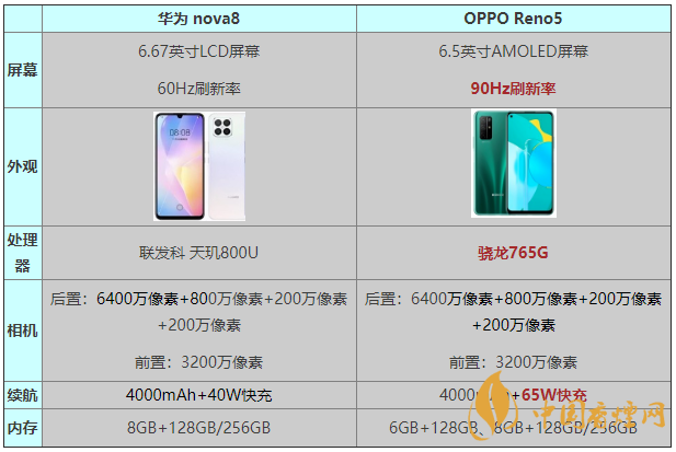 OPPOReno5和華為Nova8參數配置對比 哪款手機好