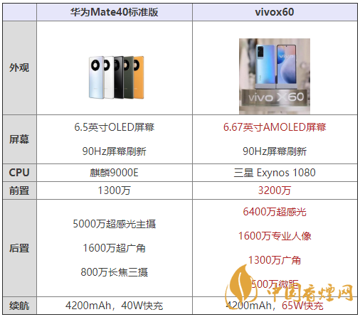 華為Mate40標準版和vivox60哪款手機更好 參數配置對比