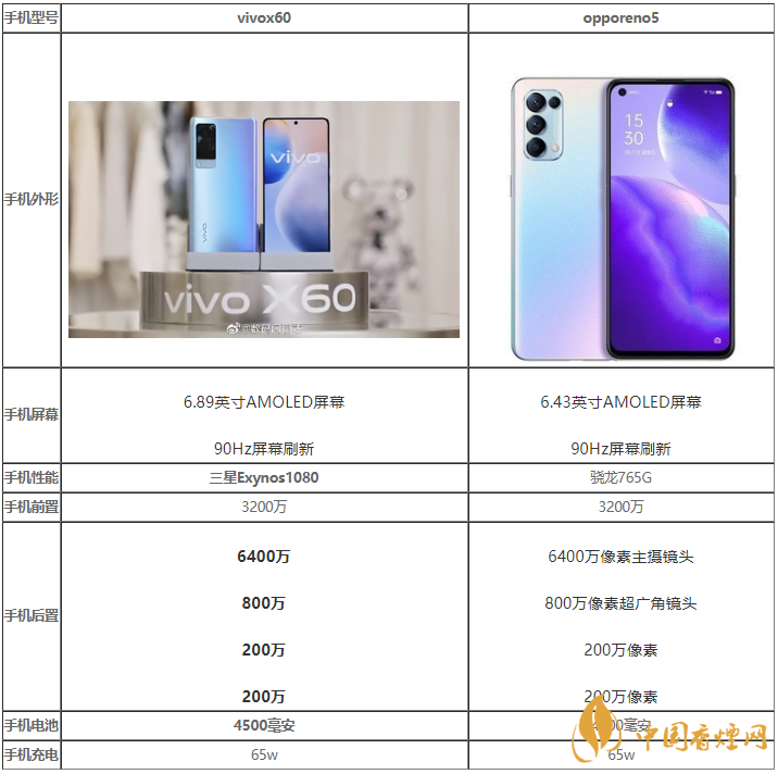 vivox60和opporeno5哪款手機更值得買?vivox60和opporeno5都是二款中高端5g手機,vivox60手機據消息將在12月底進行發布,那么vivox60和opporeno5有什么區別呢?接下來和香煙網小一起來看看這兩款手機的參數配置對比吧~