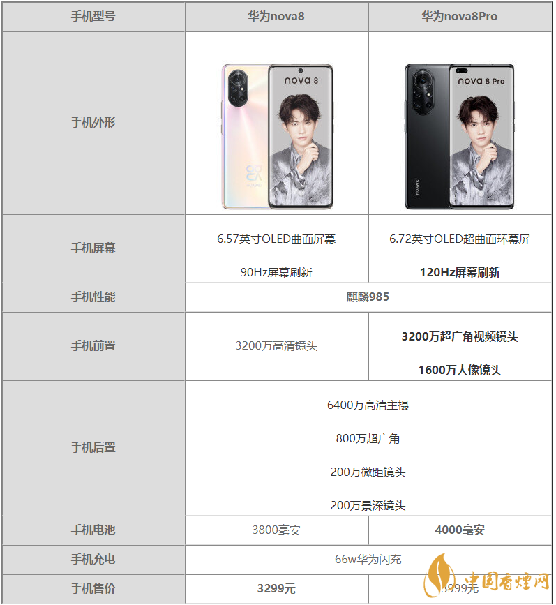 華為nova8和華為nova8pro參數對比 有什么優缺點