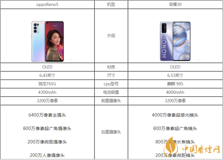 opporeno5和榮耀30哪款手機(jī)更好?opporeno5手機(jī)是oppo最近發(fā)布的一款5G手機(jī),榮耀30S也是一部性價(jià)比很高的手機(jī)。這兩款手機(jī)除了性能上還有什么差距呢?下面香煙網(wǎng)小編將對(duì)opporeno5和榮耀30參數(shù)對(duì)比進(jìn)行介紹,一起來(lái)看看吧!