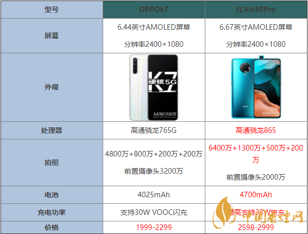 OPPOk7和紅米k30Pro有什么區(qū)別 參數(shù)對(duì)比