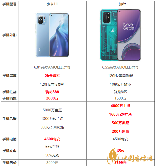 小米11作為今年剛發(fā)布的新款手機(jī),它和一加8t這兩款手機(jī)都是今年十分熱門的手機(jī),那么這兩款手機(jī)具體的參數(shù)對比怎么樣?哪款手機(jī)更值得入手?下面香煙網(wǎng)小編將對小米11和一加8t參數(shù)對比進(jìn)行介紹,感興趣的朋友一起來看看吧!