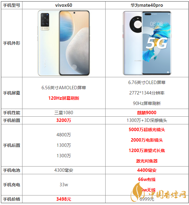 許多小伙伴對vivox60和華為mate40pro手機十分關心,不知道從何入手,那么這兩款手機直接有什么不同之處?哪款手機更好?哪款手機更值得入手?下面香煙網小編將對vivox60和華為mate40pro參數對比進行介紹,一起來看看吧!