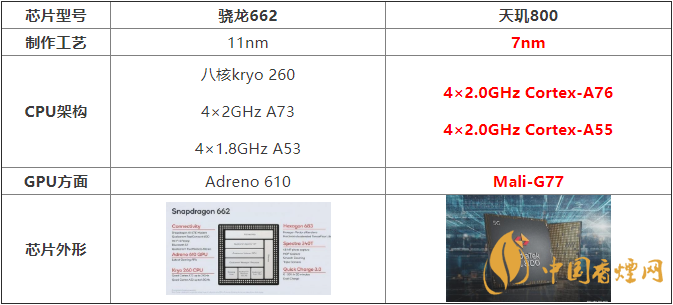 天璣800:八顆核心為4×2.0GHz Cortex-A76+4×2.0GHz Cortex-A55;采用了4*A76+4*A55的核心組合,最高頻率均達到了2.0GHz