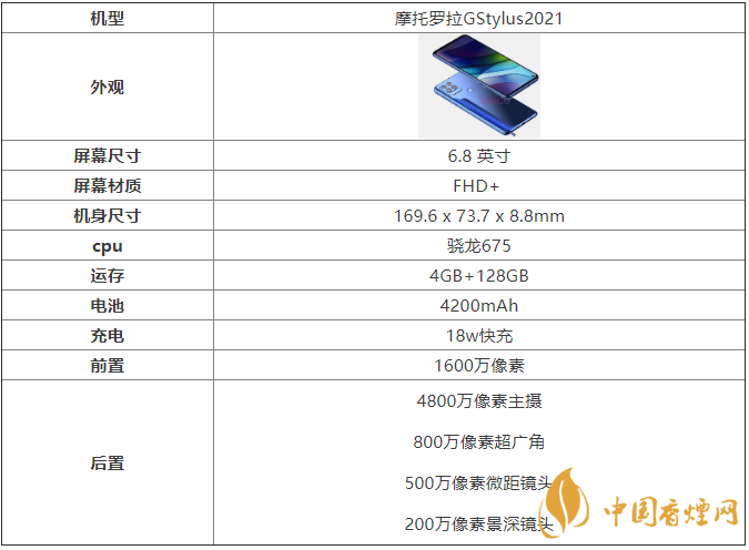 摩托羅拉GStylus2021參數配置詳情