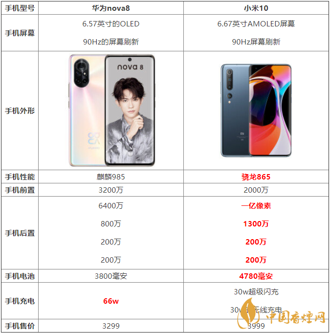 華為nova8與小米10有哪些區(qū)別-參數(shù)配置對比