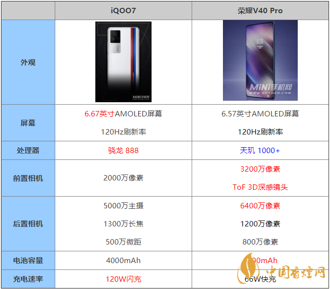 榮耀V40Pro和iQOO7有什么區別-參數對比