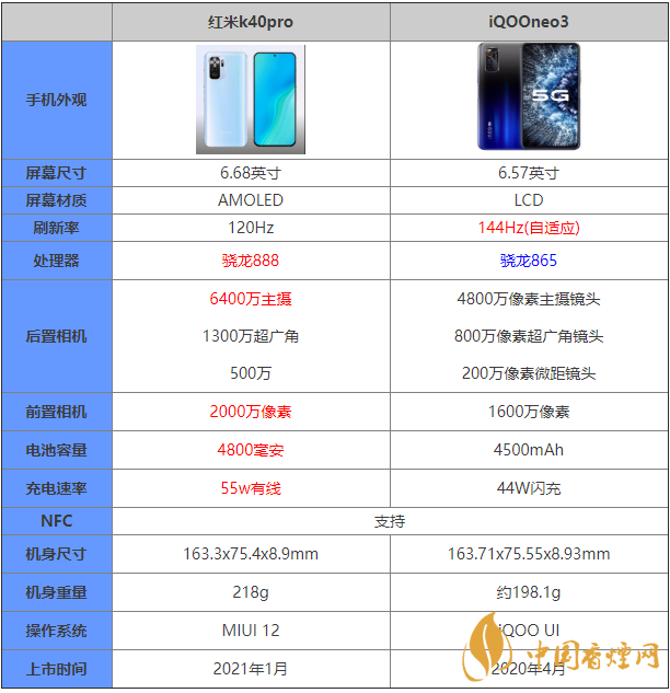 紅米k40pro和iQOOneo3參數對比 哪款手機更值得入手