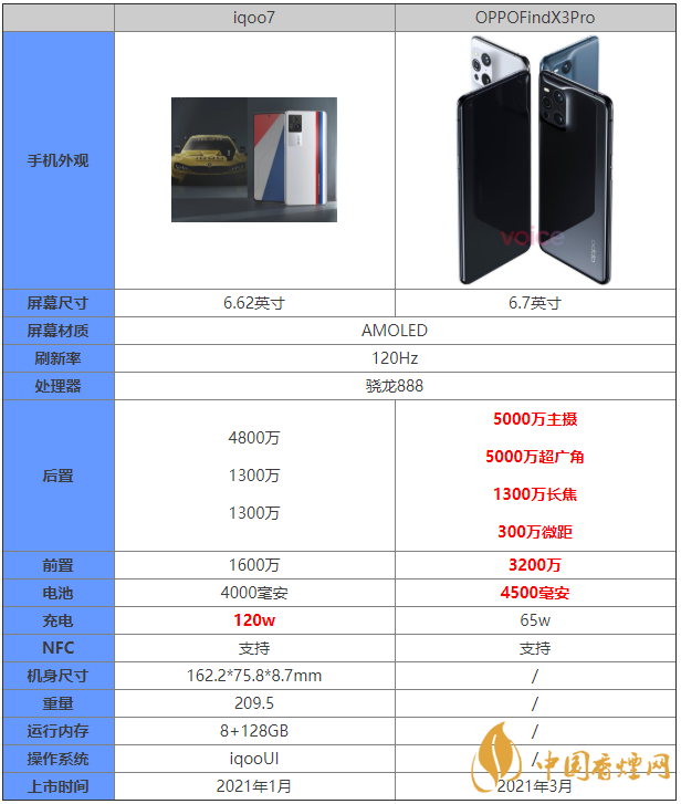 OPPOFindX3Pro和iqoo7都是搭載的驍龍888處理器,那么這兩款手機的區別是什么?哪款手機的性價比更高?哪款手機更值得入手?下面香煙網小編為大家帶來OPPOFindX3Pro和iqoo7參數對比,快來看看吧。