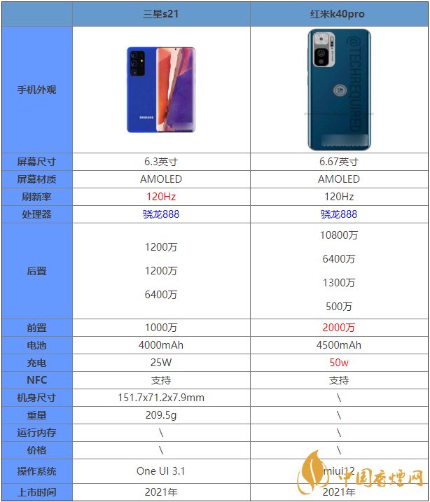近期,即將迎來三星s21新機的發布,三星s21和紅米k40Pro有哪些區別?哪款手機更好?許多朋友對這兩款手機都十分關注,下面香煙網小編給大家帶來三星s21和紅米k40Pro的詳細參數對比,感興趣的朋友一起來看看吧!