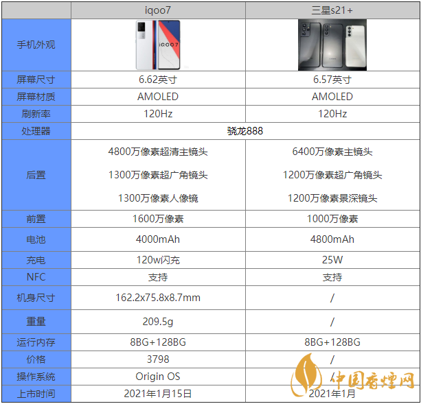 最新發布的iqoo7手機,相信許多小伙伴都十分關注,那么對比三星s21+這兩款手機的區別是什么?哪款手機更好?哪款手機更值得入手?下面香煙網小編為大家帶來最新的iqoo7和三星s21+參數對比,快來看看吧。