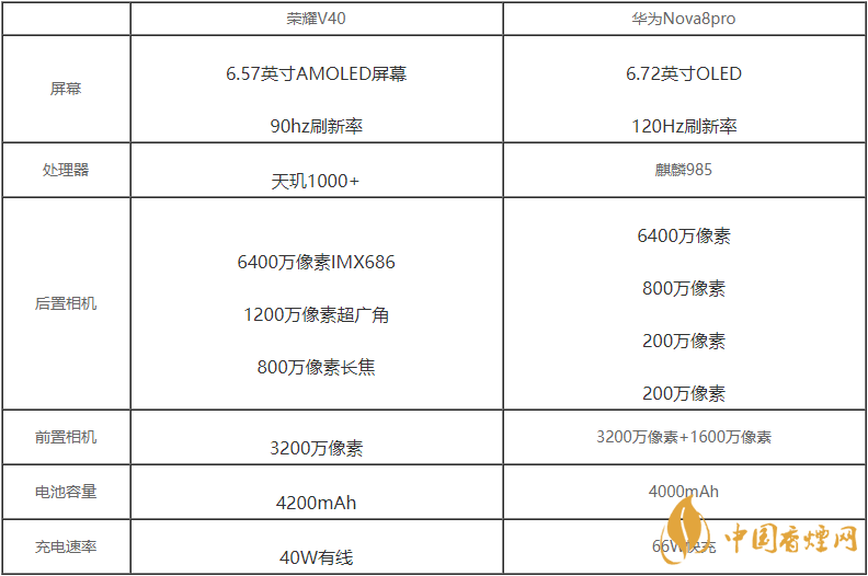 榮耀v40和華為nova8Pro參數(shù)對(duì)比詳情