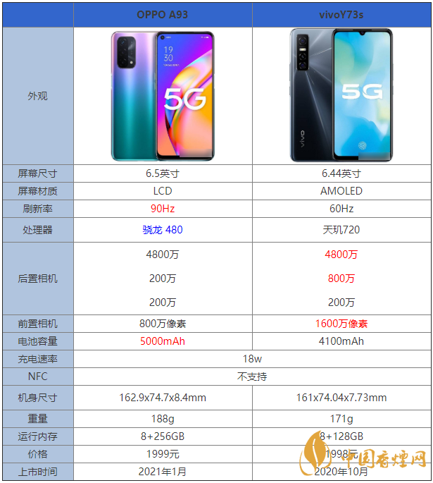OPPOA93和vivoY73s的價格都相差不多,許多小伙伴不知道該入手哪款手機,那么OPPOA93和vivoY73s有什么區別?哪款手機更值得入手?下面香煙網小編將對OPPOA93和vivoY73s參數對比進行介紹,感興趣的朋友一起來看看吧!