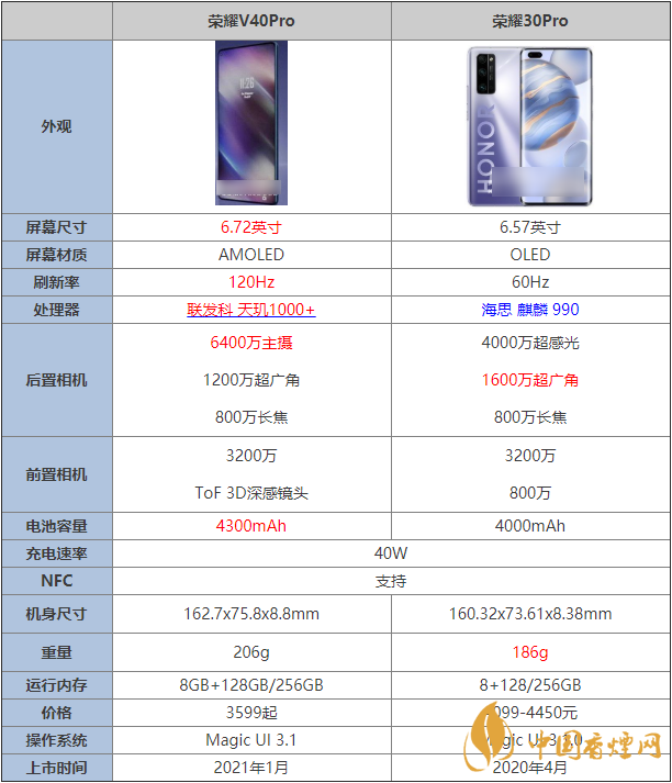 榮耀v40pro和榮耀30pro參數(shù)對比 哪款手機(jī)更好